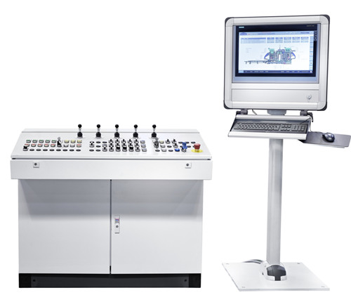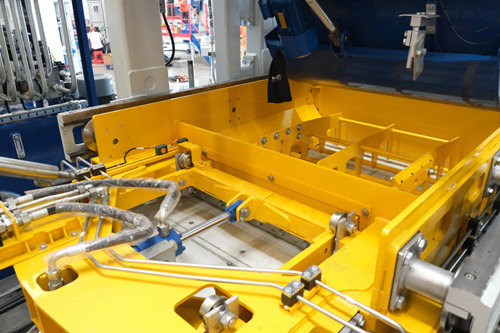 Kepala penekan, rangka cetakan, wadah agregat, dan wadah kain dikendalikan oleh Kepala tamper, rangka cetakan, kotak pengumpan untuk campuran dasar dan campuran muka dikontrol