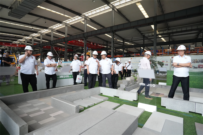 Di area display contoh batu bata, berbagai batu bata permeabel, batu bata imitasi, dan bahan bangunan daur ulang limbah padat menarik perhatian rombongan pengunjung. Fu Binghuang, Ketua Quangong Machinery Co., Ltd, menjelaskan bahwa melalui penelitian dan pengembangan teknologi, Quangong Machinery Co., Ltd. mengubah limbah seperti limbah konstruksi dan tailing menjadi bahan bangunan bernilai tambah tinggi dan ramah lingkungan, membuang lebih dari 10 juta ton limbah padat setiap tahunnya. Ketua Liu Guoquan memeriksa kekuatan dan permeabilitas sampel batu bata, memuji praktik QGM dalam "mengubah sampah menjadi harta karun" sebagai "model ekonomi sirkular."