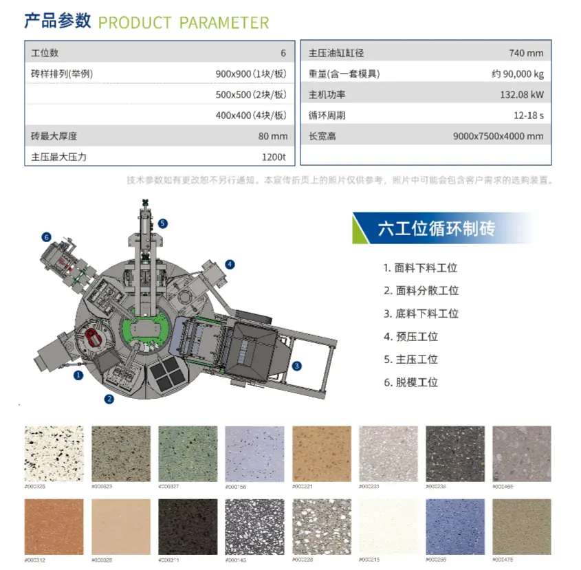 Mesin Press Statis Meja Putar HP-1200T secara kreatif memisahkan proses pembuatan batu bata menjadi 7 stasiun, disusun dalam tata letak melingkar, mengurangi ruang lantai, dan memiliki area cetakan yang besar serta rentang ketinggian cetakan, memastikan bahwa beragam kebutuhan pelanggan untuk produk balok beton batu imitasi terpenuhi, mengisi kesenjangan dalam mesin batu bata imitasi tujuh stasiun putar domestik. Standar grup yang dirumuskannya "Mesin Pembentuk Blok Beton Tekan Statis Multi-stasiun Putar T/CCMA 0125-2022" telah dipilih sebagai salah satu dari 100 proyek percontohan penerapan standar grup Kementerian Perindustrian dan Teknologi Informasi pada tahun 2023.