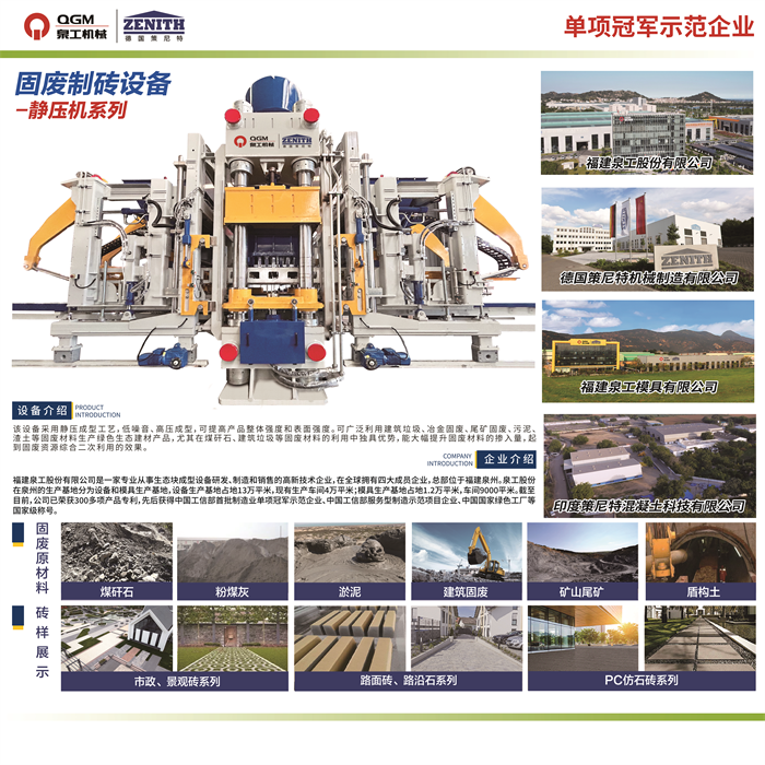 Perangkat ini dapat secara luas memanfaatkan limbah padat konstruksi, limbah padat metalurgi, limbah padat tailing, bubuk batu, lumpur, dan bahan limbah padat terkait lumpur pencuci pasir untuk menghasilkan batu bata PC batu imitasi, batu bata lanskap taman, batu bata pelindung lereng pemeliharaan air, batu bata permukaan jalan, batu pinggir jalan, bahan bangunan hiasan dinding, dll. Perangkat ini memiliki keunggulan unik dalam pemanfaatan bahan bubuk seperti residu limbah dan tailing, yang secara signifikan dapat meningkatkan jumlah bahan bubuk yang ditambahkan, benar-benar mencapai konsumsi skala besar berbagai limbah padat curah residu dan mencapai efek pemanfaatan sekunder sumber daya limbah padat secara komprehensif.